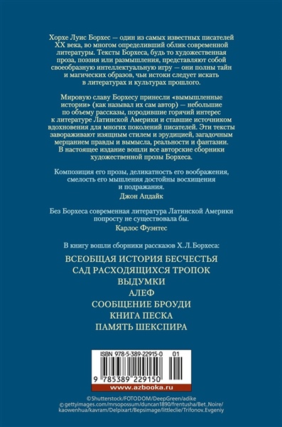Хорхе Луис Борхес — один из самых известных писателей ХХ века, во многом определивший облик современной литературы. Тексты Борхеса, будь то художественная проза, поэзия или размышления, представляют собой своеобразную интеллектуальную игру — они полны тайн и магических образов, чьи истоки следует искать в литературах и культурах прошлого. Мировую славу Борхесу принесли «вымышленные истории» (как называл их сам автор) — небольшие по объему рассказы, породившие горячий интерес к литературе Латинской Америки и ставшие источником вдохновения для многих поколений писателей. Эти тексты завораживают изящным стилем и эрудицией, загадочным мерцанием правды и вымысла, реальности и фантазии.В настоящее издание вошли все авторские сборники художественной прозы Борхеса.