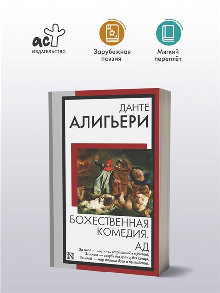 Заплутав в дремучем лесу, лирический герой поэмы Данте Алигьери "Божественная комедия" встречает своего любимого поэта Вергилия, который зовет его совершить путешествие по всем трем царствам загробного мира. Следуя за Вергилием через Ад и Чистилище, ступая мимо искупающих грехи грешников, Данте направляется к вратам Рая, где его ждет возлюбленная муза Беатриче. "Божественная комедия" оказала огромное влияние на всю последующую мировую культуру. Рафаэль, Сальвадор Дали и Сандро Боттичелли, Ференц Лист, Томас Элиот и Хорхе Луис Борхес — в своих творениях все отдали дань великой поэме. В данное издание вошла первая, наиболее популярная часть "Божественной комедии" — "Ад".