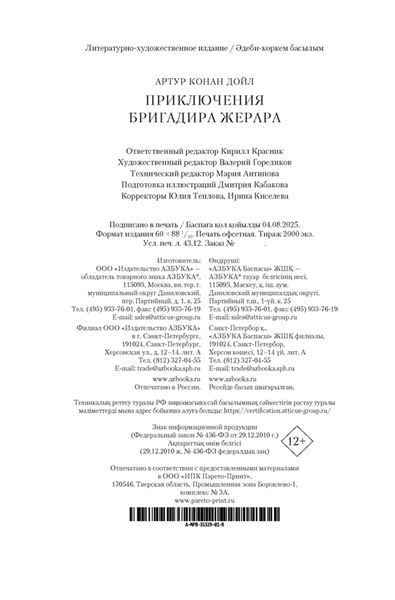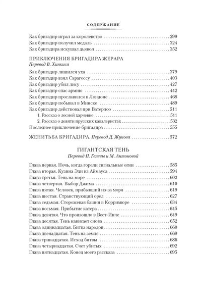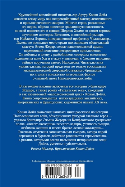 В настоящее издание включены все истории о бригадире Жераре, а также роман «Гигантская тень», входящий в так называемый «наполеоновский цикл» Конан Дойла. Книга сопровождается иллюстрациями английских, американских и французских художников начала XX века.