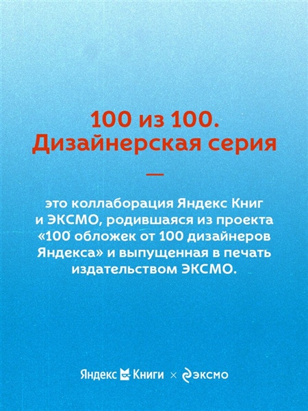 "100 из 100. Дизайнерская серия" - это коллаборация ЭКСМО и Яндекс Книг, родившаяся из проекта «100 обложек от 100 дизайнеров Яндекса». Актуальность классических текстов подчеркивается разнообразием художественных приемов в оформлении.