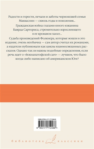 Судьба произведений Фолкнера, которые вошли в это издание, очень необычна, — сам автор считал их романами, а издатели публиковали как циклы взаимосвязанных рассказов. Однако так ли важны подобные определения, если речь идет о "йокнапатофской саге" — лучшем, что было когда-либо написано об американском Юге?