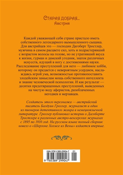 Писатель и журналист Балдуин Гроллер, автор рассказов о приключениях венского сыщика, создавал этот цикл на протяжении пятнадцати лет, с 1895 по 1910 год, как историю с продолжением, публиковавшуюся в литературных журналах Австро-Венгрии, и стал одним из пионеров детективного жанра в немецкоязычной литературе. На русский язык полный сборник новелл о Дагоберте Тростлере переведен впервые.