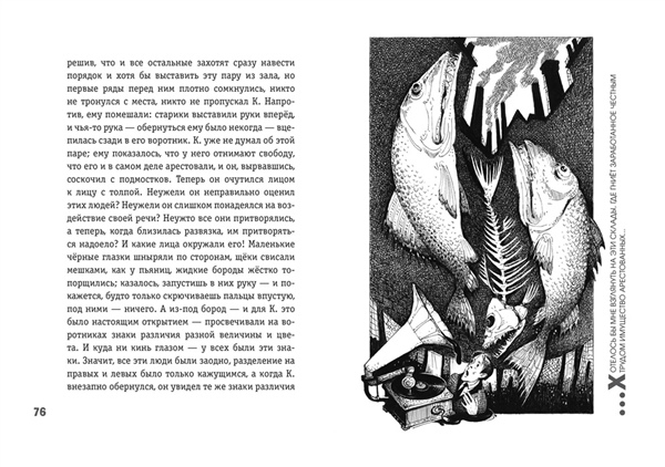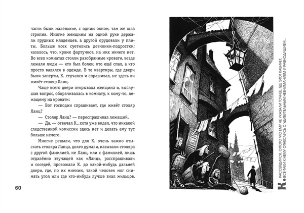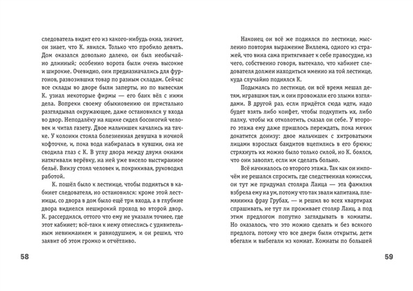 ГРАНИЦА МЕЖДУ АБСУРДОМ И РЕАЛЬНОСТЬЮ — ГДЕ ОНА? Что удивляет больше всего в произведениях Франца Кафки? Пожалуй, то, что всё происходящее с героями нисколько их самих не удивляет. Грегор Замза, превратившийся в огромного жука, нимало этим не шокирован и думает лишь о том, как бы не опоздать на поезд. Йозеф К. нисколько не удивляется своему аресту, хотя твёрдо знает, что ни в чём не виноват. Фантастические элементы встроены в реальный мир, но автор не пытается их объяснить, а герои не оспаривают их логику. В магическом реализме диковинное так тесно и странно переплетено с обыденным, что почти невозможно понять, где заканчивается одно и начинается другое. Но можно попытаться проникнуть в глубины кафкианских фантазий через портал, созданный загадочной графикой Андрея Симанчука, чьи работы словно направляют нас в миры К. Чюрлёниса и Ф. Кало. Издание в твёрдом переплёте.