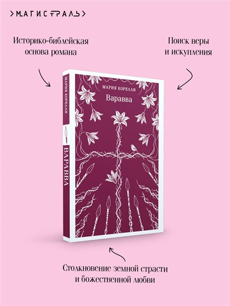 «Варавва: Сон о трагедии мира» — роман Марии Корелли, впервые опубликованный в 1893 году. История представляет собой вымышленный рассказ о жизни Вараввы, известного преступника, освобождённого по воле народа вместо Иисуса Христа во время суда у Понтия Пилата. Мария Корелли через образ Вараввы раскрывает духовное преображение грешной души, которая, соприкоснувшись с Божественным, приходит к раскаянию, внутреннему очищению и возрождению. Роман призывает задуматься о природе греха, прощения и о вечных ценностях, подчёркивая актуальность евангельской истории даже спустя тысячу лет. Яркие описания и поэтический язык Корелли создают сюрреалистическую и потустороннюю атмосферу.