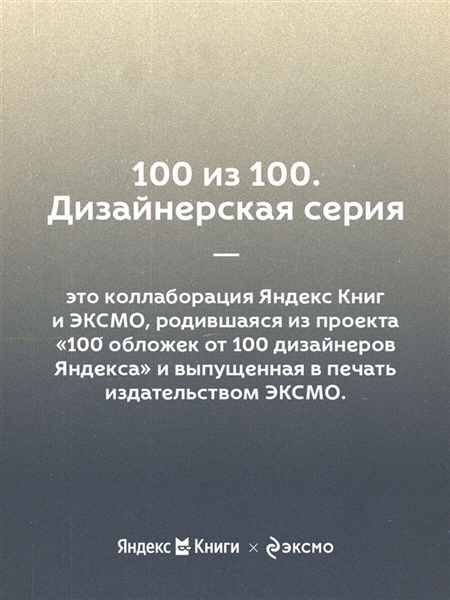 "100 из 100. Дизайнерская серия" - это коллаборация ЭКСМО и Яндекс Книг, родившаяся из проекта «100 обложек от 100 дизайнеров Яндекса». Актуальность классических текстов подчеркивается разнообразием художественных приемов в оформлении.