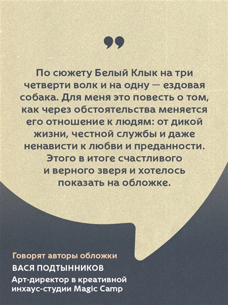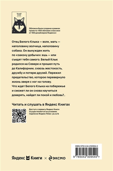 Отец Белого Клыка — волк, мать — наполовину волчица, наполовину собака. Он вынужден жить по «закону добычи»: ешь — или съедят тебя самого. Белый Клык родился на Севере и прошел путь до Калифорнии, сквозь жестокость, дружбу и потерю друзей. Это история одного предательства, которое перевернуло жизнь пса с ног на голову. Белый Клык пройдет всю Америку, чтобы снова научиться доверять. Что ждет Белого Клыка на побережье и сможет ли он найти покой и любовь?..
