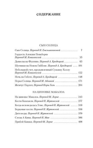Произведения Джека Лондона, признанного классика американской и мировой литературы, пользуются неизменным успехом у читателей. Он прославился как автор романов и повестей об увлекательных и опасных путешествиях, о сильных, благородных и целеустремленных людях. Однако Джек Лондон по праву считается еще и одним из крупнейших мастеров короткого рассказа. В настоящее издание вошли два его авторских сборника рассказов, написанных уже в поздний период творчества. Цикл «Сын Солнца» (1912) — это восемь отдельных историй, объединенных одним персонажем: авантюрист Дэвид Гриф приехал на острова Южного моря, заработал там огромные деньги, но по-прежнему остается смелым, готовым рисковать искателем приключений. «На циновке Макалоа» (сборник вышел в свет в 1919 году) — рассказы, в которых описывается жизнь на Гавайских островах: удивительная природа островов, жизнь на берегу Тихого океана, обычаи и нравы местного населения; великолепный рассказчик, Джек Лондон дает возможность читателям ощутить соприкосновение с этим экзотическим миром.