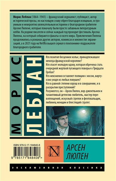Морис Леблан (1864 – 1941) – французский журналист, публицист, автор исторической прозы, но настоящую славу обрел благодаря изящным, остроумным и невероятно увлекательным историям о благородном грабителе Арсене Люпене, которые поначалу были просто забавным литературным хобби. На родине писателя и сейчас каждый год проходит фестиваль Арсена Люпена, на который собираются фанаты со всего мира. Приключения Люпена продолжились в романах других авторов, комиксах и множестве экранизаций, а в 2021 году на Netflix вышел сериал о поклоннике-подражателе благородного грабителя.