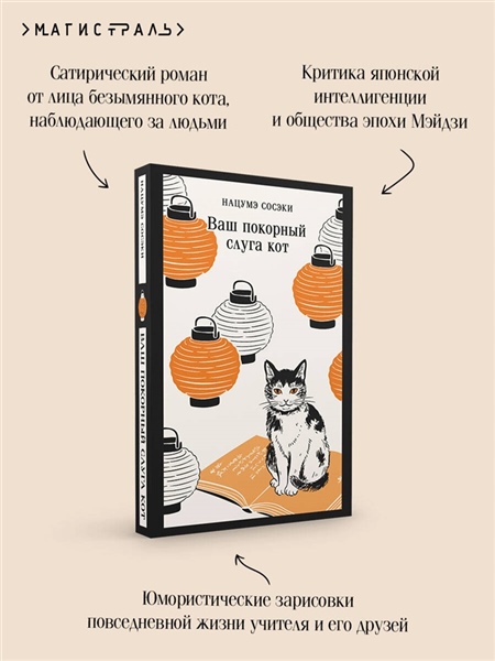 "Ваш покорный слуга кот" — ироничная жемчужина японской классики, где домашний питомец становится самым наблюдательным хроникёром человеческих слабостей.