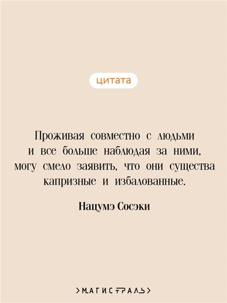 Перед читателем — Токио начала XX века, зыбкая эпоха перемен. Сквозь ленивый прищур и царственную независимость кот описывает своих хозяев и их друзей: ученых, мечтателей, амбициозных карьеристов. Он видит их смешные тревоги, нелепые позы, комические попытки казаться важнее, чем они есть. И вся эта панорама человеческой природы звучит неожиданно свежо: парадоксальным образом именно кот оказывается самым трезвым философом в комнате.