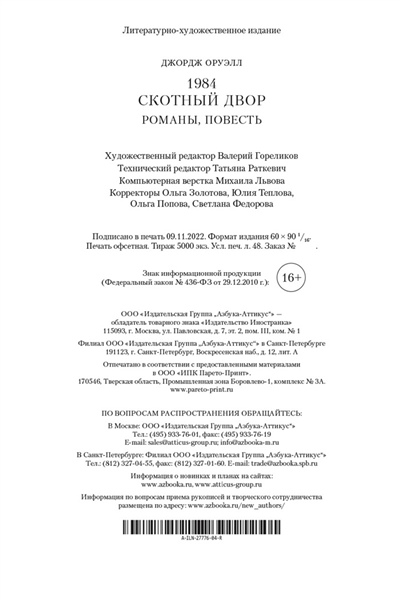 Оруэлл Дж. 1984. Скотный Двор. Романы, повесть