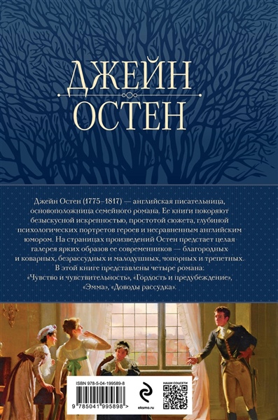 В этой книге представлены 4 романа: «Чувство и чувствительность», «Гордость и предубеждение», «Эмма», «Доводы рассудка».