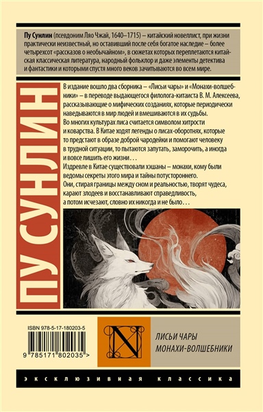В издание вошло два сборника "Лисьи чары" и "Монахи-волшебники" в переводе видного филолога-китаиста Алексеева В. М., рассказывающие о мифических созданиях, которые периодически наведываются в мир людей и вмешиваются в их судьбы. Во многих культурах лиса считается символом хитрости и коварства. В Китае ходят легенды о лисах-оборотнях, которые то предстают в образе доброй чародейки и помогают человеку в трудной ситуации, то пытаются запутать, заморочить, а иногда и вовсе лишить его жизни… Издревле в Китае существовали хэшаны – монахи, кому были ведомы секреты этого мира и тайны потустороннего. Они, стирая границы между сном и реальностью, творят чудеса, карают злодеев и восстанавливают справедливость, а потом исчезают, словно их никогда и не было…