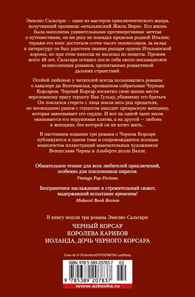 В настоящем издании три романа о Черном Корсаре публикуются в одном томе и сопровождаются полным комплектом иллюстраций замечательных художников Венцеслава Черны и Альберто Делла Валле.