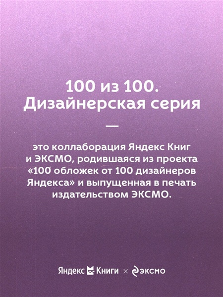 "100 из 100. Дизайнерская серия" - это коллаборация ЭКСМО и Яндекс Книг, родившаяся из проекта «100 обложек от 100 дизайнеров Яндекса». Актуальность классических текстов подчеркивается разнообразием художественных приемов в оформлении.