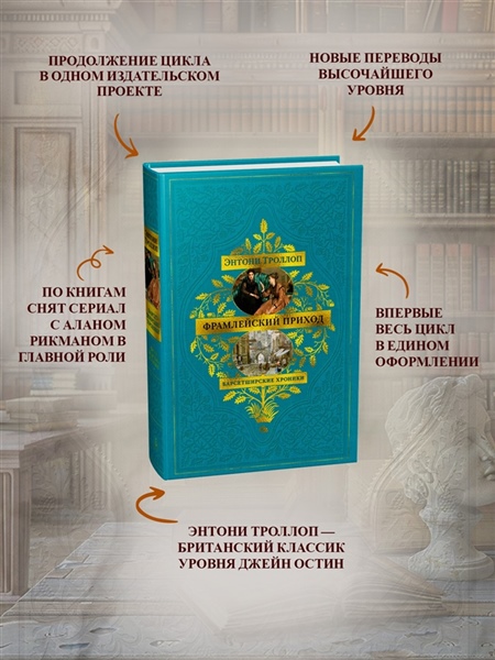 Энтони Троллоп — британский классик, современная популярность которого в англоязычном мире может сравниться разве что со славой Джейн Остин («Троллоп убивает меня своим мастерством», — писал в своем дневнике Лев Толстой), а «Барсетширские хроники» заслуженно считаются едва ли не главным его достижением. «Фрамлейский приход» — четвертая книга «Хроник»; читатель узнает о дальнейшей судьбе доктора Торна, мисс Данстейбл и других полюбившихся персонажей. Итак, у молодого священника Марка Робартса есть все, чего можно желать: любящая жена, финансовое благополучие, дружба с помещичьим семейством, на чьих землях расположен его приход. Природа одарила его умом и обаянием. Казалось бы, живи и радуйся, однако ему хочется большего — вращаться среди аристократов и членов парламента, покупать дорогих лошадей и охотиться вместе с избранным обществом. Увы, аристократы и члены парламента далеко не всегда порядочны, а знакомство с ними легко доводит до беды… Роман печатается с классическими иллюстрациями знаменитого художника-прерафаэлита Джона Эверетта Милле, сопровождавшими первое издание «Фрамлейского прихода» в журнале Cornhill Magazine.
