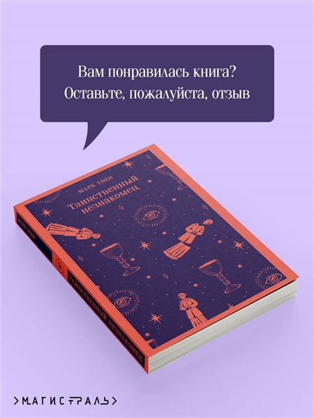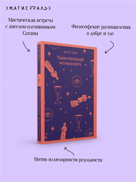 В данном сборнике собраны одни из лучших рассказов американского писателя Марка Твена, раскрывающие весь спектр его таланта: от сатиры и иронии до философии и тонкой человеческой наблюдательности. Повесть «Таинственный незнакомец» задумывалась Марком Твеном в трех разных вариантах, ни один из них он не закончил, в этом сборнике самое первое издание повести. Действие происходит в маленькой деревне Эзельдорф, спрятанной в горах Австрии. Трое юных друзей встречают незнакомца по имени Филипп Траум. Он очаровывает ребят волшебными деяниями, например, создает людей размером с палец, читает их мысли, меняет судьбы людей. Во время долгой беседы выясняется, что Филипп — ангел, да еще и племянник самого дьявола... Мистический персонаж ставит под сомнение природу добра и зла, показывая несовершенства мира, критикуя религиозные догмы и человеческие предрассудки.