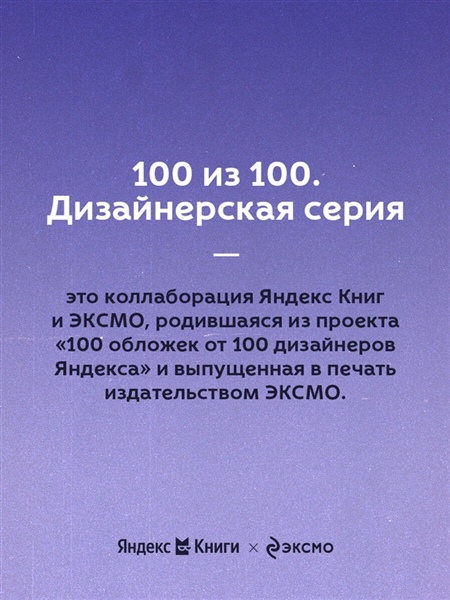"100 из 100. Дизайнерская серия" - это коллаборация ЭКСМО и Яндекс Книг, родившаяся из проекта «100 обложек от 100 дизайнеров Яндекса». Актуальность классических текстов подчеркивается разнообразием художественных приемов в оформлении.