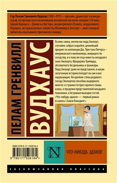 Хозяин замка, весельчак лорд Эмсворт, случайно забрал скарабея, ценнейший предмет из коллекции Дж. Престона Питерса — американского миллионера, живущего по соседству, и к тому же отца невесты младшего сына Эмсворта, Фредерика Трипвуда, абсолютного бездельника и транжиры. Лорд Эмсворт даже не представлял, в какую запутанную историю попадет он сам и все окружающие. Но крепкие стены родового гнезда Эмсвортов способны выдержать многое: и странности престарелого главы клана, и проделки представителей младшего поколения, и безумные выходки гостей. "Что-нибудь эдакое" — первый роман из цикла "Замок Бландинг".