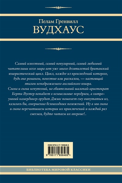Самый известный, самый популярный, самый любимый читателями всего мира вот уже много десятилетий британский юмористический цикл. Цикл, каждое из произведений которого, будь оно романом, повестью или рассказом, — настоязий эталон неподражаемого английского юмора. Снова и снова непутевый, но обаятельный шалопай-аристократ Берри Вустер попадает в немыслимые передряги, а хитроумный камердинер-эрудит Дживс помогает ему выпутаться из, казалось бы, совершенно безвыходных положений. Ну а мы снова и снова перечитываем истории их приключений и каждый раз смеемся, будто читаем их впервые!..