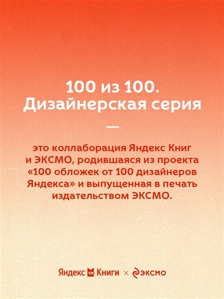"100 из 100. Дизайнерская серия" - это коллаборация ЭКСМО и Яндекс Книг, родившаяся из проекта «100 обложек от 100 дизайнеров Яндекса». Актуальность классических текстов подчеркивается разнообразием художественных приемов в оформлении.