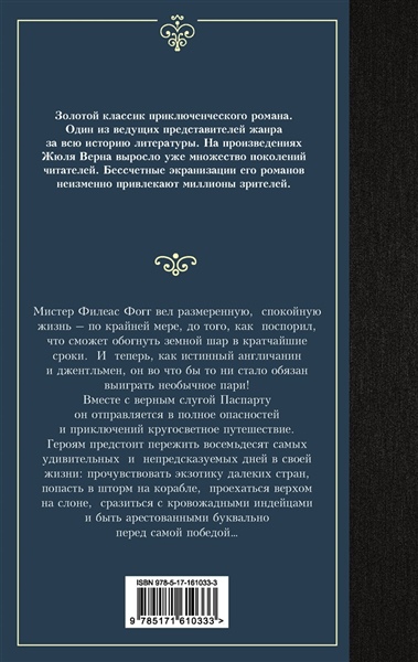 Мистер Филеас Фогг вел размеренную,спокойную жизнь – по крайней мере, до того, какпоспорил, что сможет обогнуть земной шар в кратчайшие сроки.Итеперь, как истинный англичанин и джентльмен, он во что бы то ни стало обязан выиграть необычное пари! Вместе с верным слугой Паспарту он отправляется в полное опасностей и приключений кругосветное путешествие. Героям предстоит пережить восемьдесят самых удивительныхинепредсказуемых дней в своей жизни: прочувствовать экзотику далеких стран, попасть в шторм на корабле,проехаться верхом на слоне,сразиться с кровожадными индейцами и быть арестованными буквально перед самой победой…