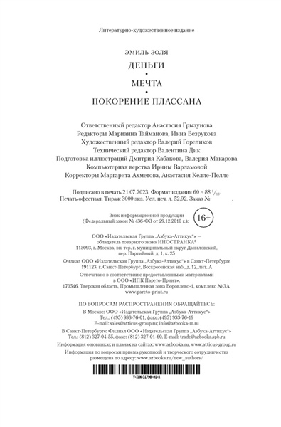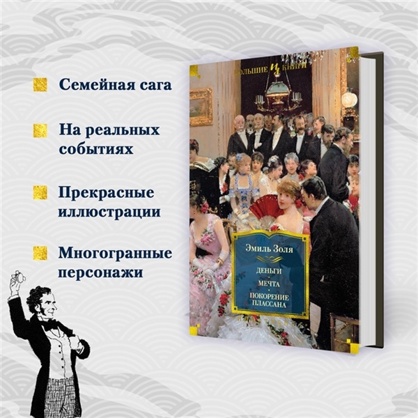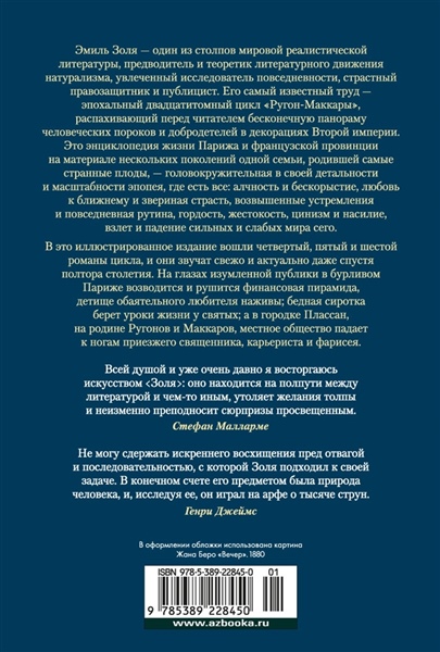 Эмиль Золя — один из столпов мировой реалистической литературы, предводитель и теоретик литературного движения натурализма, увлеченный исследователь повседневности, страстный правозащитник и публицист, повлиявший на все реалистическое направление литературы XX века и прежде всего — на школу «новой журналистики»: Трумена Капоте, Тома Вулфа, Нормана Мейлера. Его самый известный труд — эпохальный двадцатитомный цикл «Ругон-Маккары», распахивающий перед читателем бесконечную панораму человеческих пороков и добродетелей в декорациях Второй империи. Это энциклопедия жизни Парижа и французской провинции на материале нескольких поколений одной семьи, родившей самые странные плоды, — головокружительная в своей детальности и масштабности эпопея, где есть все: алчность и бескорыстие, любовь к ближнему и звериная страсть, возвышенные устремления и повседневная рутина, гордость, жестокость, цинизм и насилие, взлет и падение сильных и слабых мира сего. В это иллюстрированное издание вошли четвертый, пятый и шестой романы цикла, и они звучат свежо и актуально даже спустя полтора столетия. На глазах изумленной публики в бурливом Париже возводится и рушится финансовая пирамида, детище обаятельного любителя наживы; бедная сиротка берет уроки жизни у святых; а в захолустном городке Плассан, на родине Ругонов и Маккаров, местное общество падает к ногам приезжего священника, карьериста и фарисея. Романы «Мечта» и «Покорение Плассана» издаются в новых переводах. Некоторые иллюстрации Натана Альтмана к роману «Деньги» публикуются впервые.