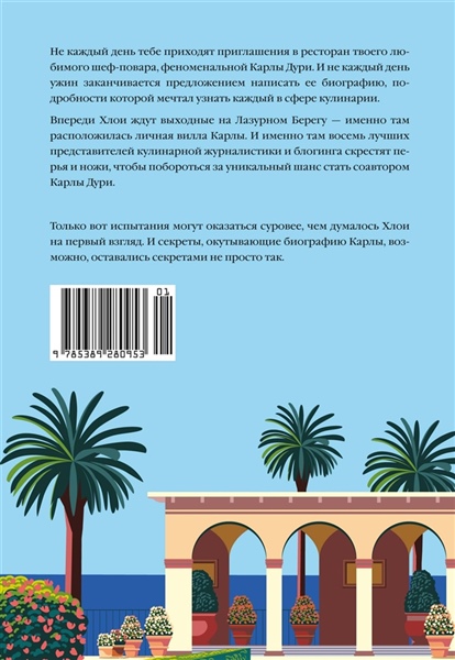 Не каждый день тебе приходят приглашения в ресторан твоего любимого шеф-повара, феноменальной Карлы Дури. И не каждый день ужин заканчивается предложением написать ее биографию, подробности которой мечтал узнать каждый в сфере кулинарии. Впереди Хлои ждут выходные на Лазурном Берегу – именно там расположилась личная вилла Карлы. И именно там восемь лучших представителей кулинарной журналистики и блоггинга скрестят перья и ножи, чтобы побороться за уникальный шанс стать соавтором Карлы Дури. Только вот испытания могут оказаться суровей, чем думалось Хлои на первый взгляд. И секреты, окутывающие биографию Карлы, возможно, оставались секретами не просто так.