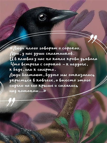 Кстати, и всю эту глубокую, поэтичную, иногда комичную и очень правдивую историю рассказывает он сам — сорочий джентльмен в нарядном черном фраке с белой манишкой.