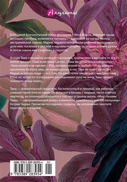 Марни, потерявшая из-за побоев мужа нерожденного ребенка, подобрала выпавшего из гнезда птенца австралийской сороки, выходила его и дала имя — Тамагочи. Теперь стая Тамы — не вольные сороки во главе с суровым отцом, а Марни и ее муж Роб, фермер и лучший в районе лесоруб (который, впрочем, не выносит сорок), и поет он не двухголосные песни сородичей, а повторяет человеческие фразы. Марни выкладывает «выступления» Тамы в Интернет, и слава птицы растет – у него уже десятки тысяч подписчиков. Поскольку дела на ферме идут скверно, настает момент, когда по совету сестры Марни решает монетизировать дарование Тамы. Дела в хозяйстве налаживаются, но ревнивый Роб пытается во всем контролировать жену, оскорбляет и бьет ее. События принимают совсем дурной оборот после конкурса лесорубов, и лишь Таме удается найти выход из ситуации, хотя и не лучший...