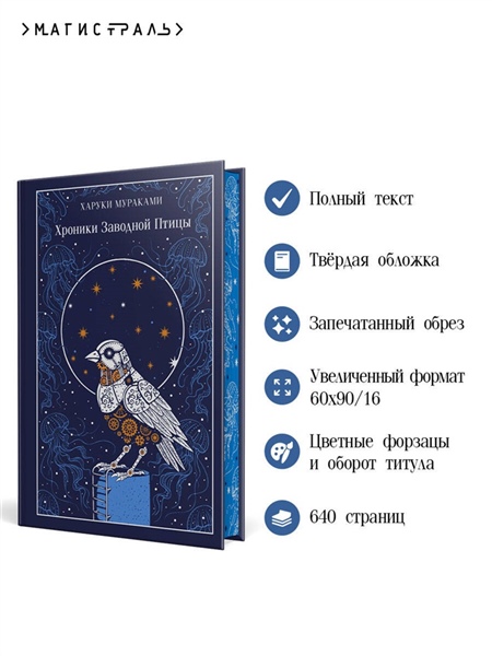 Новая серия классики для поклонников «Магистраль. Главный тренд» в твёрдой обложке. Безупречность стиля, лаконичность, тактильные материалы, цветные форзацы, рисунок на обрезе. Харуки Мураками — японский писатель, ставший классиком при жизни. За роман «Хроники Заводной Птицы» он получил престижную литературную премию «Ёмиури», которой удостаивались Юкио Мисима, Кобо Абэ, Кандзабуро Оэ, Рю Мураками и другие. Сначала у Тору Окады пропал кот. Затем незнакомка попыталась заняться с ним сексом по телефону. А потом исчезла его жена Кумико. И все это под механический крик Заводной Птицы. Поиски приводят героя к старому пересохшему колодцу. Чутье подсказывает Тору спуститься на самое дно. Из прохладного мрака он попадает в другую реальность, а затем переносится в далекое прошлое. Если Тору сможет связать воедино все ниточки, он спасет Кумико. Вот только ее брат, известный политик Нобору Ватая, постарается этого не допустить.