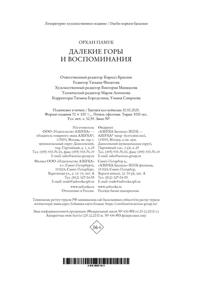 «Далекие горы и воспоминания» — прекрасный подарок для поклонников творчества самого известного турецкого писателя, лауреата Нобелевской премии Орхана Памука, автора романов «Музей Невинности», «Имя мне — Красный», «Стамбул. Город воспоминаний» и других.