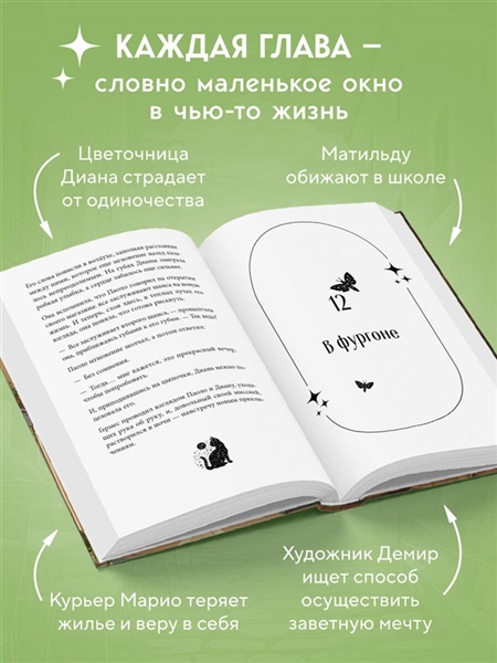Что связывает робкую школьницу, одинокую продавщицу цветов, усталого курьера и талантливого художника? Казалось бы, ничего. Но в жизни каждого из них вдруг появляется он — черный кот с белым пятнышком на груди и изумрудными глазами. Он помогает героям поверить в чудеса, обрести опору и решиться на перемены. Порой счастье просто приходит к вашему дому, мурлыча у ног и смотря на вас глазами, полными бездонного доверия… Позвольте ему войти. И жизнь уже никогда не будет прежней.
