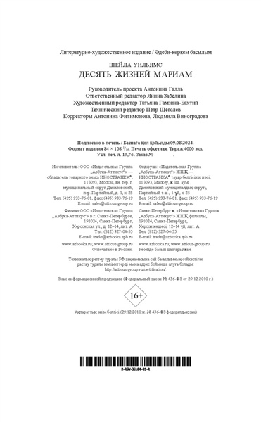 1870 год. В штате Огайо идет перепись населения. Древняя как мир темнокожая старуха дремлет во дворике небольшого домишки. Скучающий переписчик фиксирует ее ответы на вопросы. Имя: Мариам Присцилла Грейс… бывшая рабыня. Родилась: в 1758 году, а может, и раньше, место рождения… Из памяти старухи поднимаются давно забытые воспоминания: с родовых врат, с собственного непроизносимого имени раскручивается причудливая спираль жизней мамы Грейс, наполненных тяжелым трудом, заботой о больных, но также любовью и, главное, жаждой свободы, о которой родившимся в Африке остается только рассказывать своим детям. «Десять жизней Мариам» — увлекательная историческая эпопея, посвященная путешествию женщины, прозванной «африкской ведьмой», через океан лет, такой же неохватный, как Атлантический, который навсегда разлучил ее с родиной.