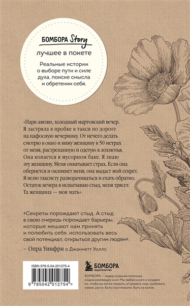 «Секреты порождают стыд. А стыд, в свою очередь, порождает барьеры, которые мешают нам принять и полюбить себя, использовать весь свой потенциал, открыться другим людям». — Опра Уинфри о Джаннетт Уоллс