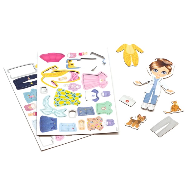 Кристина работает ветеринаром, занимается спортом и любит моду! С магнитным набором малышка подберёт стильные наряды для куклы и придумает множество увлекательных сюжетов для игр. Выберите подходящий наряд и аксессуары, а затем приложите их к кукле. Одежда соединится с моделью благодаря магнитной ленте.