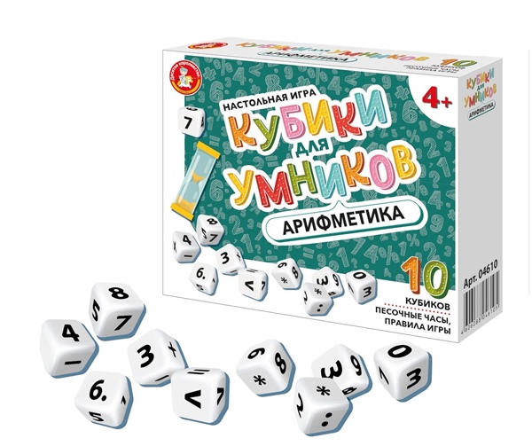 Настольная игра «Кубики для умников. Арифметика» способствует развитию математических навыков и позволяет легко и непринуждённо освоить арифметику начальной школы.