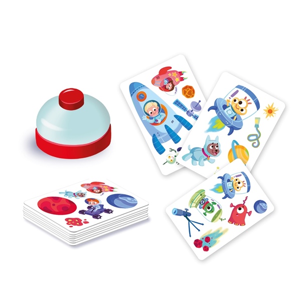 «Десять, девять… три, два, один! Пуск!» Отправляйтесь в увлекательное приключение на космическом корабле! Исследуйте далекие галактики, открывайте новые планеты, знакомьтесь с дружелюбными инопланетяшками! Исследуйте солнечную систему или отправляйтесь за звездный предел! Увлекательная игра на внимательность станет отличным развлечением для шумной компании или веселого семейного вечера. Ищите сходство на карточках, жмите на звонок и узнайте, кто самый внимательный, смекалистый и быстрый! Два варианта игры в одной коробке — «Больше всех» и «Кто быстрее»: соберите как можно больше похожих карточек или избавьтесь от всех своих карточек быстрее остальных игроков. Играйте с ребенком, помогая ему развивать логику, внимательность, скорость реакции, мелкую моторику и память. Следуйте инструкции или придумайте свой вариант игры, чтобы давать ребенку новые интересные задачки: найти все карточки с загаданным изображением, закончить, пока не истечет таймер, и т.д. Карточки выполнены из плотного, износостойкого картона, благодаря чему яркая картинка в сочных цветах будет радовать вашего ребенка долгое время. Дети могут играть дома или на улице, взять игру с собой в поездку или весело провести время на «переменке» в школе или в детском саду.