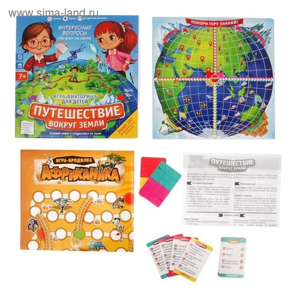 Подготовьте флажки и фишки и начинайте игру! Ваша цель — покорить гору знаний. Вставайте на клетки и вытягивайте карточки с вопросами, которые соответствуют их темам: человек, животные, география или страны и столицы. Отвечайте на вопросы и зарабатывайте баллы, которые указаны рядом с каждым из них. А игрок, который быстрее всех соберёт все флажки своего цвета и дойдёт до горы знаний, станет победителем!