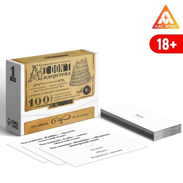 Встречайте продолжение легендарной викторины! На одной стороне карточки написано иностранное слово, которое смешно звучит по-русски, а на другой — 3 варианта его толкования. Правильный только один, его игрок и должен определить. Чтобы проверить себя или другого участника, просто переверните карту.