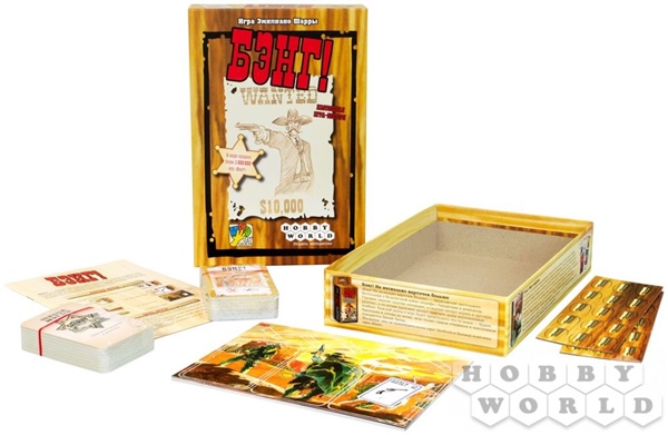 «Бэнг!» — это настольный спагетти-вестерн, в который играют сотни тысяч ковбоев во всём мире. Вы станете одним из легендарных персонажей Дикого Запада — от Малыша Билли до Неуловимого Джо. Вам достанется тайная роль — шерифа, его помощника, бандита или ренегата, — от которой зависит ваша игровая цель. Средства для её достижения — в комплекте: дикие мустанги и роковые красотки, салуны и дилижансы и, конечно, целый арсенал верного оружия. Чью жизнь меткая пуля оборвёт первой — и кто останется в живых в самом конце?