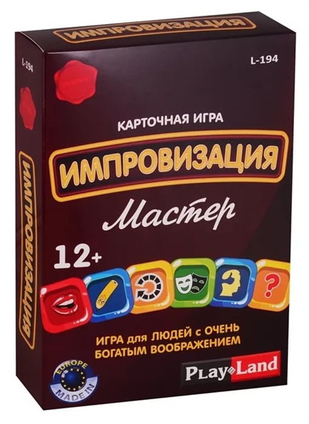 "Импровизация: Мастер" - для людей с богатым воображением старше 12 лет и для тех кто хочет его развить, в ней могут участвовать от 3 до 4 игроков. Игра вызывает огромный интерес не только потому что игроки стремятся победить, но и очень увлекателен сам процесс игры, где дается возможность импровизировать и проявлять себя! "Импровизация: Мастер" - игра для тех, кто хочет отлично провести время в веселой и творческой атмосфере с пользой для самообразования. Она создана для тех, кому надоели легкие и стандартные вопросы и задания. Бросьте вызов себе! Наш совет: в любой непонятной ситуации - импровизируй!