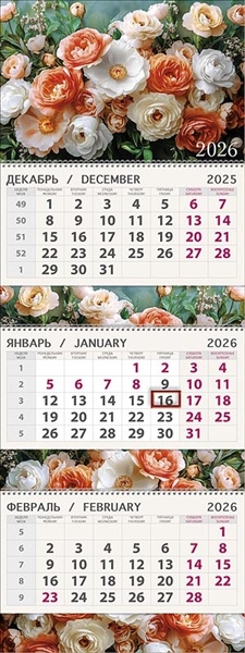 К-РЬ НАСТ 2026 КВАРТ НЕЖНЫЕ ПИОНЫ А4 СПИРАЛЬ ТРЕХБЛОЧН АРТ ДИЗАЙН 0607 277