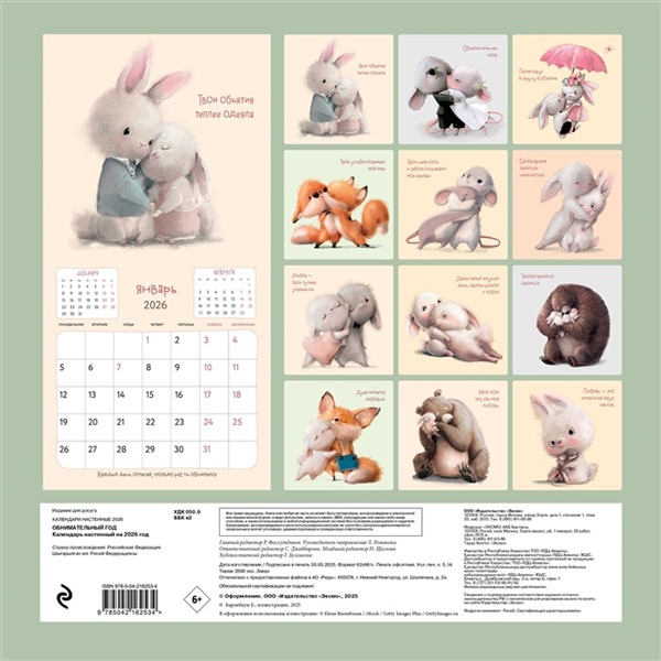 Обнимательный год. Календарь настенный на 2026 год (300х300)