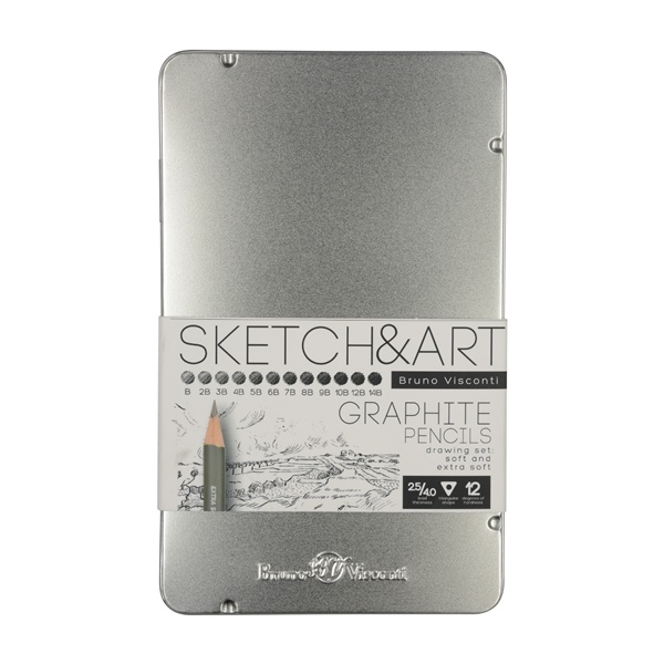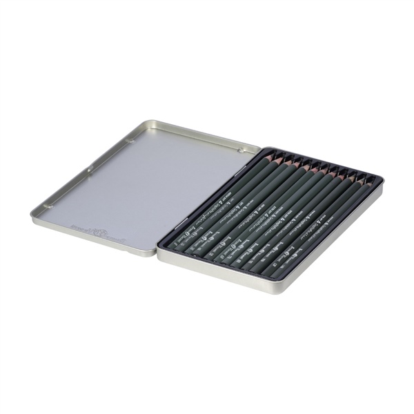 Набор ультрамягких чернографитовых карандашей со степенью твердости В-14В. Карандаши предназначены для нанесения густых теней и великолепно растушевываются. Их корпус произведен из термообработанной липы, вязкость и плотность которой позволяет надёжно удерживать грифель и сохранять качество заточки на высоком уровне. Сам грифель проклеен и отцентрован, что гарантирует ударопрочность при падении карандаша. Карандаши имеют трехгранную форму - дополнительный комфорт в работе. Оригинальный и узнаваемый дизайн, комплектация в металлической коробке - удобно хранить, транспортировать, и это идеальный вариант для подарка.