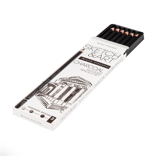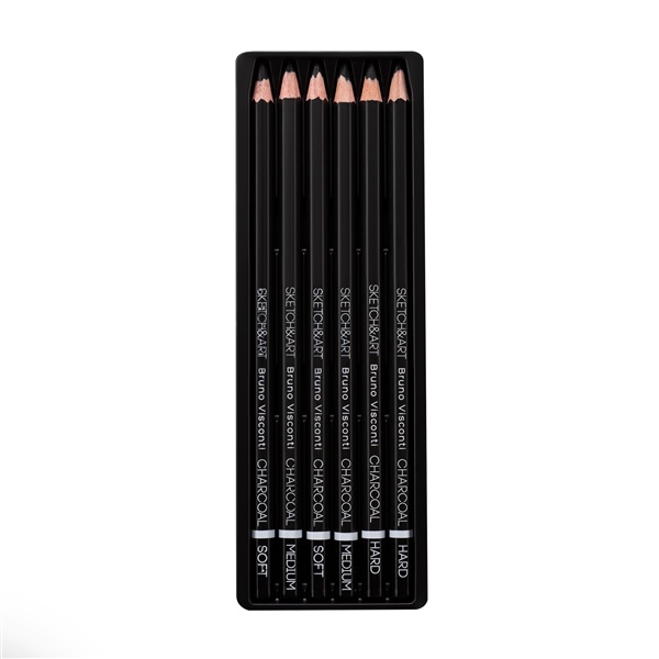 КАРАНДАШ УГОЛЬНЫЙ НАБОР 6 ШТ (МЯГК/СРЕДН/ТВЕРД) SKETCH&ART 25-002 (7382)