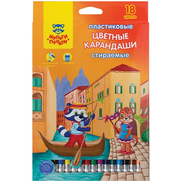 КАРАНДАШИ 18ЦВ МУЛЬТИПУЛЬТИ ЕНОТ В ВЕНЕЦИИ (С ЛАСТ*ПЛАСТИК) АРТ.19846