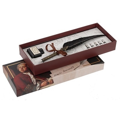 НАБОР ПОДАРОЧНЫЙ: РУЧКА ПЕРЬЕВАЯ, 5 НАКОНЕЧНИКОВ, ЧЕРНИЛЬНИЦА, L28 W11,5 H3,5 СМ 817071 (0713)