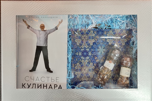ПОДАР НАБОР СЧАСТЬЕ КУЛИНАРА КНИГА+ТАРЕЛКА+СПЕЦИИ+НАПОЛН В КОРОБ