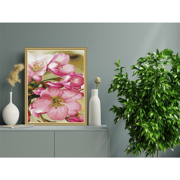 АЛМАЗНАЯ МОЗАИКА 40*50СМ С ПОДРАМ ЦВЕТЫ ЯБЛОНИАРТ.KM1047